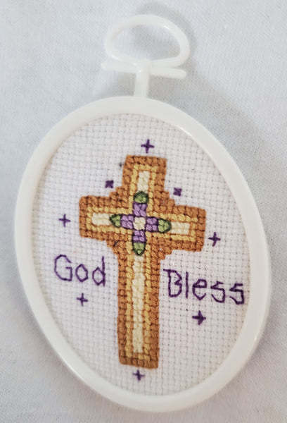 - Christian Cross Stitch Mini Frame Ornament – God Bless Christmas Decor