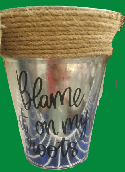 Add a little country charm and humor to your plant collection with this funny metal plant pot featuring the playful phrase “Blame It On My Roots.” Wrapped in rustic jute at the top, this farmhouse-style planter is perfect for succulents, herbs, or small houseplants. Whether you're gifting it to a plant lover, gardener, coworker, or country music fan, this punny pot makes a great birthday, housewarming, or just-because gift. Ideal for windowsills, office desks, or kitchen counters, this unique planter brings personality and greenery to any space. It’s the perfect mix of sass, soil, and style!