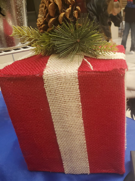 - Handmade Light-Up Christmas Gift Box – Burlap Holiday Decor