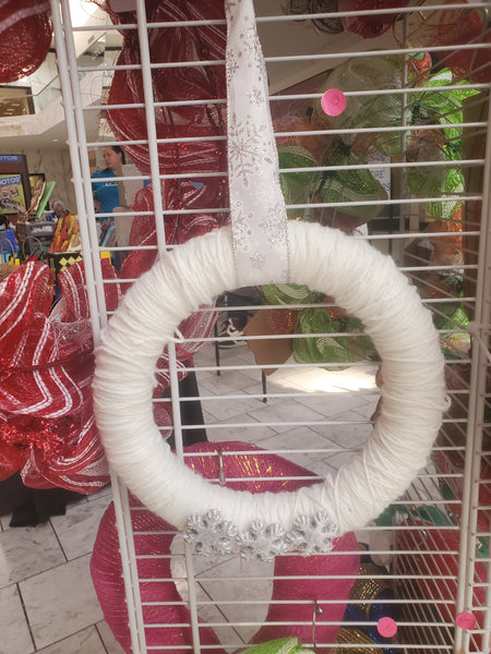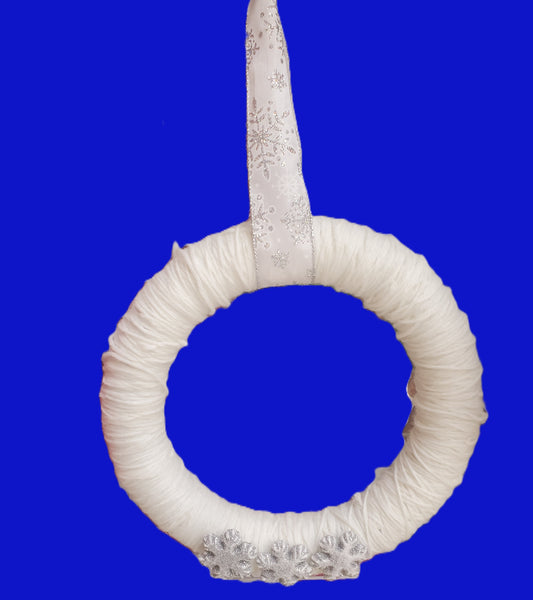 - Handmade White Yarn Winter Wreath – Snowflake Holiday Door Decor, Christmas Wall Hanging