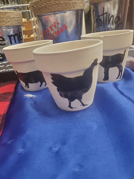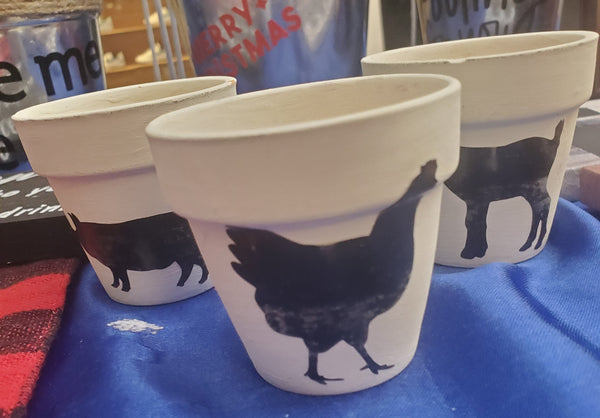 Bring a touch of the farm to your home or garden with these handcrafted small clay plant pots featuring charming silhouettes of a chicken, pig, and goat. Perfect for succulents, herbs, or small houseplants, these rustic terracotta planters add personality and warmth to any space. Ideal for farmhouse decor, country kitchens, or garden-themed gifts, these mini pots make thoughtful presents for gardeners, animal lovers, teachers, and coworkers. Whether you're decorating a windowsill or gifting a piece of the homestead, these farm animal clay pots are a delightful way to root your style in nature.