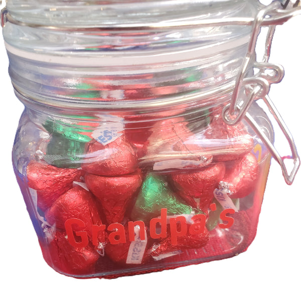 Bring back sweet memories with Grandpa’s Candy Jar—a clear glass jar filled with festive foil-wrapped chocolates in red, green, and silver. With a secure clasp lid and nostalgic charm, it’s perfect for gifting, holiday decor, or keeping treats handy on the counter. A delightful way to share joy, one kiss at a time.