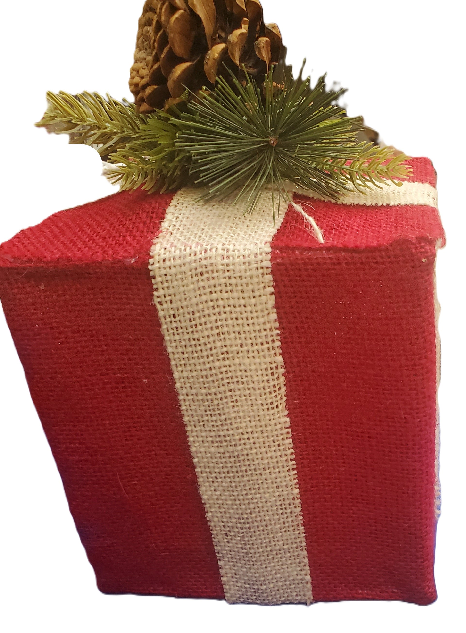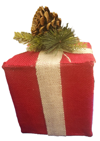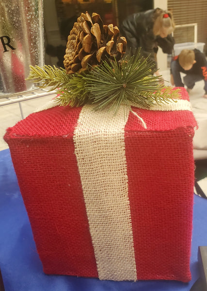 - Handmade Light-Up Christmas Gift Box – Burlap Holiday Decor