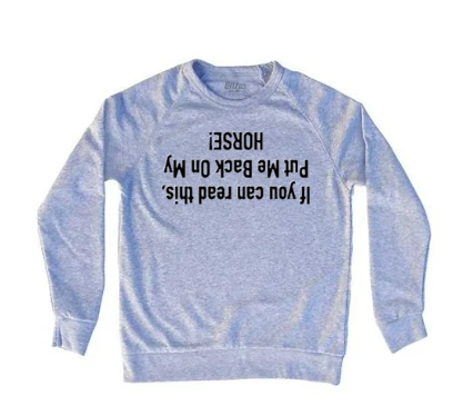 "If You Can Read This, Put Me Back On My Horse" Funny Equestrian Sweatshirt – Upside Down Barn Humor – Horse Lover Gift