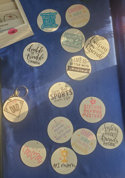 Celebrate meaningful relationships with our tags featuring heartfelt quotes for cousins, moms, dads, and sisters. These versatile pieces can be transformed into a necklace pendant, keychain charm, zipper pull, or even a Christmas ornament, making them the perfect personalized gift for any occasion.