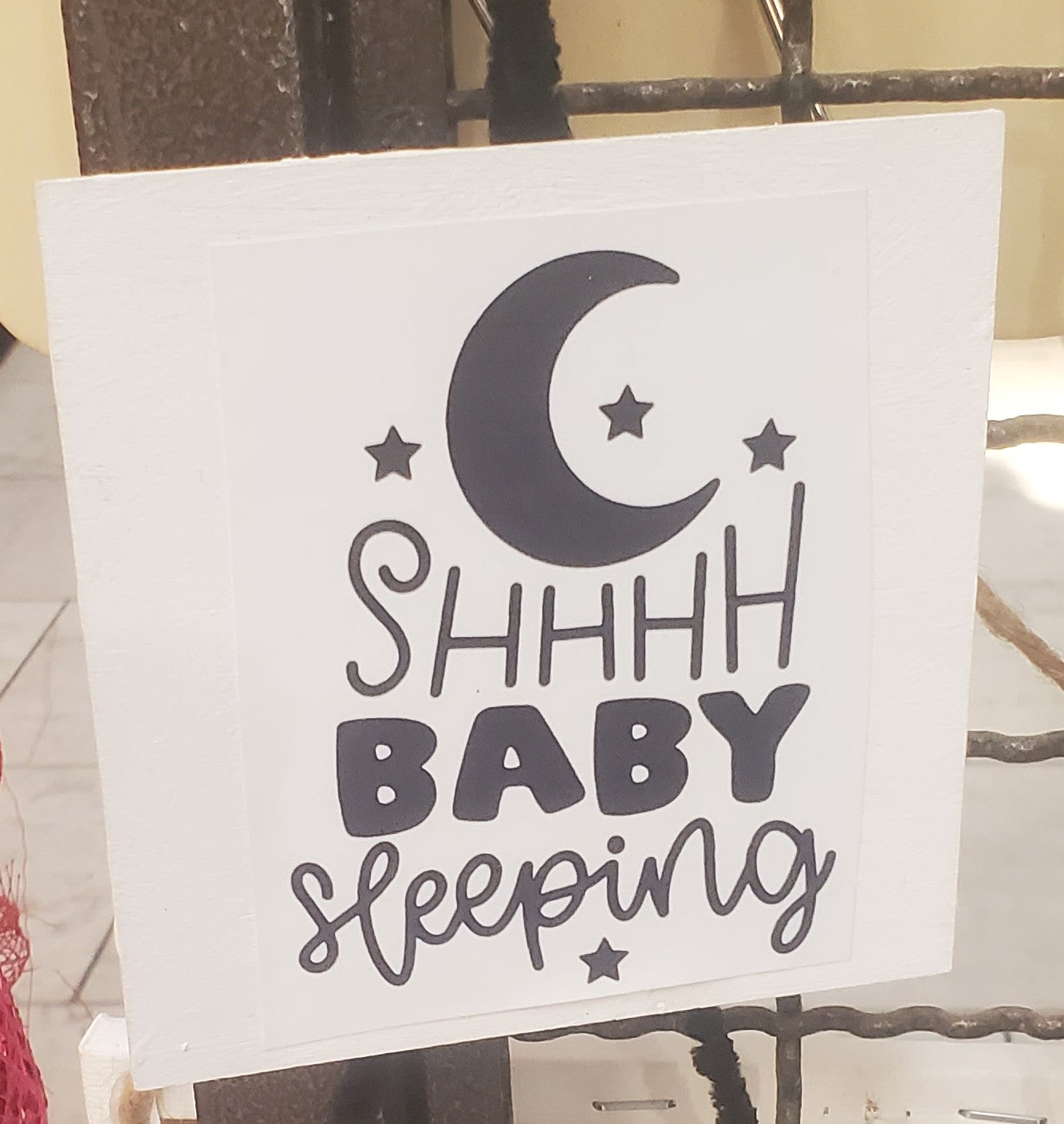 Whether you're decorating a boho baby room, setting up a calming sleep space, or gifting a handmade baby sign, this piece adds a gentle reminder to keep the noise down while baby rests. Perfect for homes with infants, toddlers, or nap-time routines.