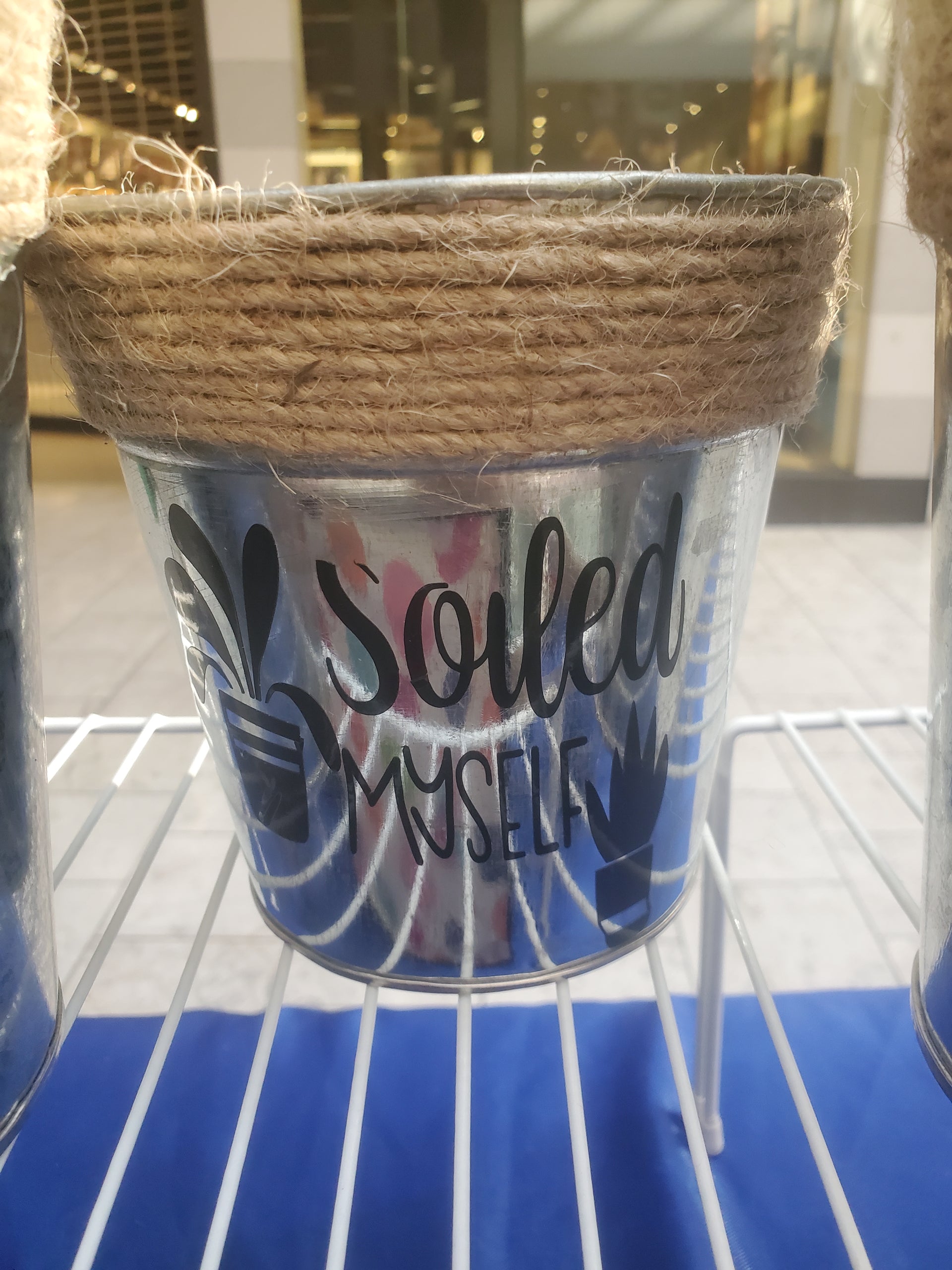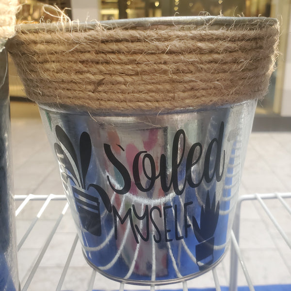 Add a splash of humor to your plant collection with this hilarious metal pot wrapped in rustic jute twine. Featuring the punny phrase "Soiled Myself," it's perfect for succulents, herbs, or as a gag gift for plant lovers with a dirty sense of humor. Lightweight, durable, and guaranteed to get a laugh—because even your plants deserve personality!
