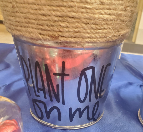 Brighten someone’s day with this punny plant pot featuring the playful phrase “Plant One On Me.” This charming planter is perfect for succulents, herbs, or small houseplants, and makes a thoughtful gift for plant lovers, gardeners, teachers, coworkers, or anyone who appreciates a good laugh. Whether you're shopping for a birthday, holiday, thank-you gift, or office desk decor, this humorous planter adds personality and greenery to any space. Wrapped with rustic twine, it’s a unique and affordable way to say “you’re appreciated” with style!