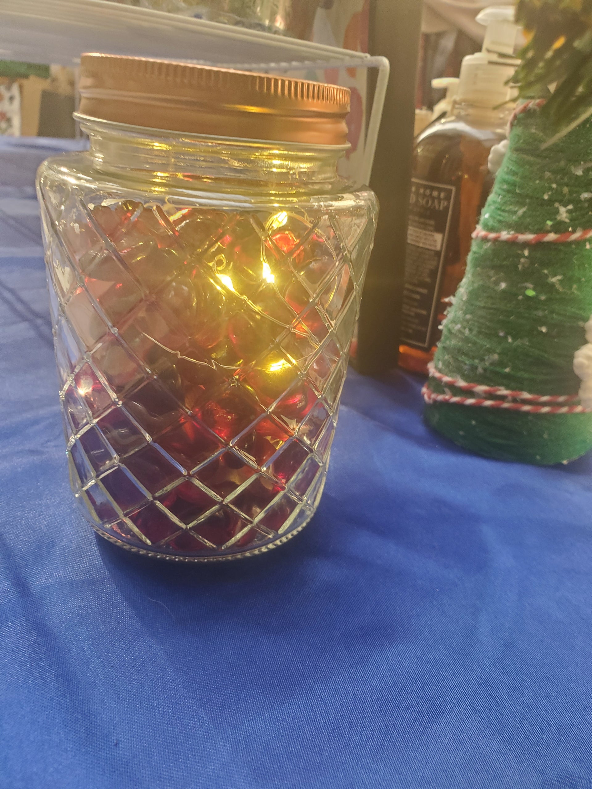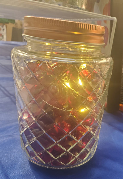 - Lighted Glass Jar Décor | LED Mason Jar with Red Gems & Warm Glow