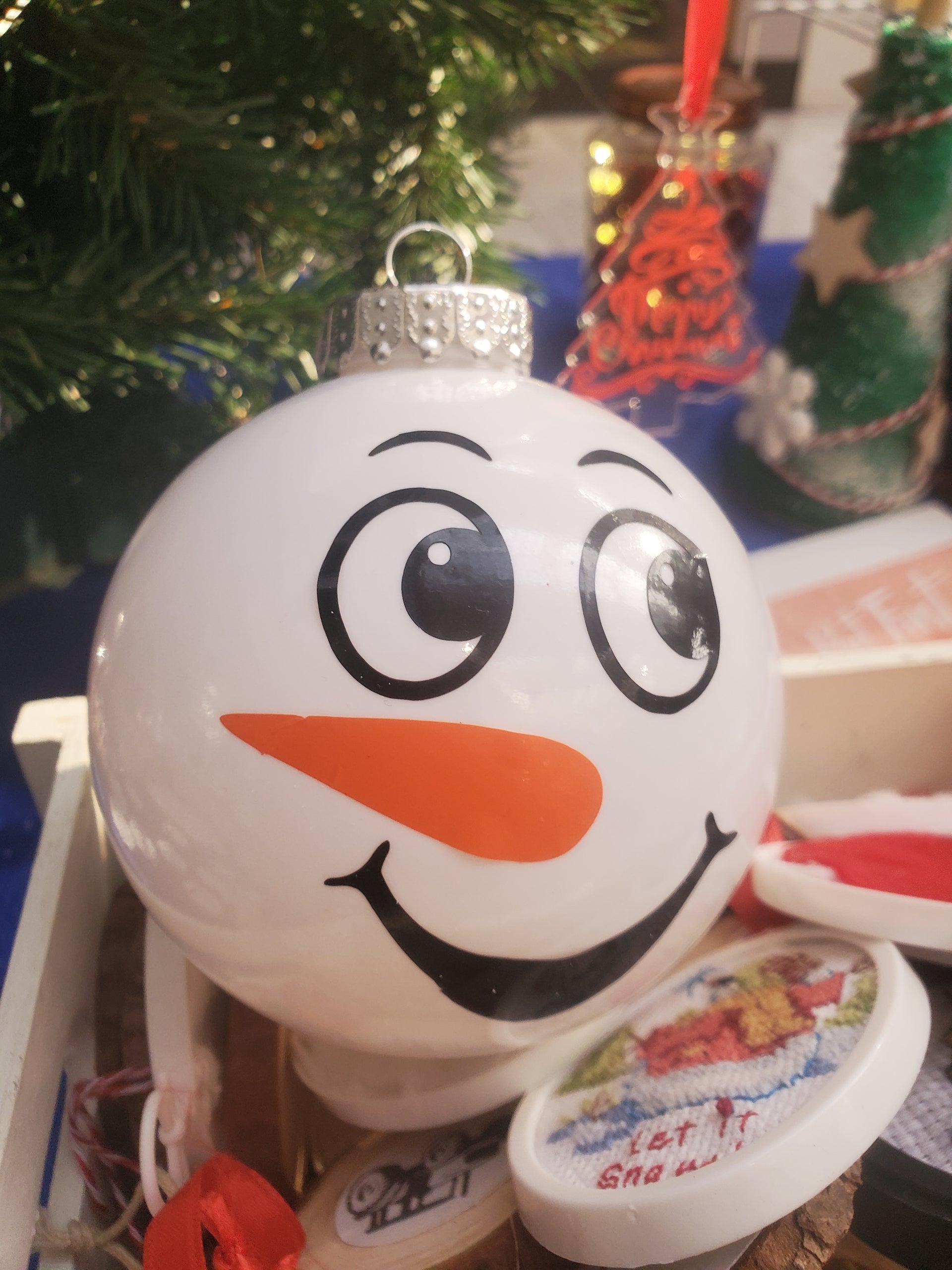 - Smiling Snowman Face White Christmas Ornament – Cute Holiday Tree Decoration, Winter Gift Idea