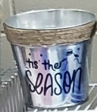 Celebrate the season with this festive galvanized metal pot featuring “Tis the Season” in blue lettering. Perfect for holiday plants, poinsettias, succulents, or small gifts. Add rustic farmhouse charm to your Christmas decor, mantel, or table display. A durable, reusable winter planter ideal for indoor or outdoor festive decorating.