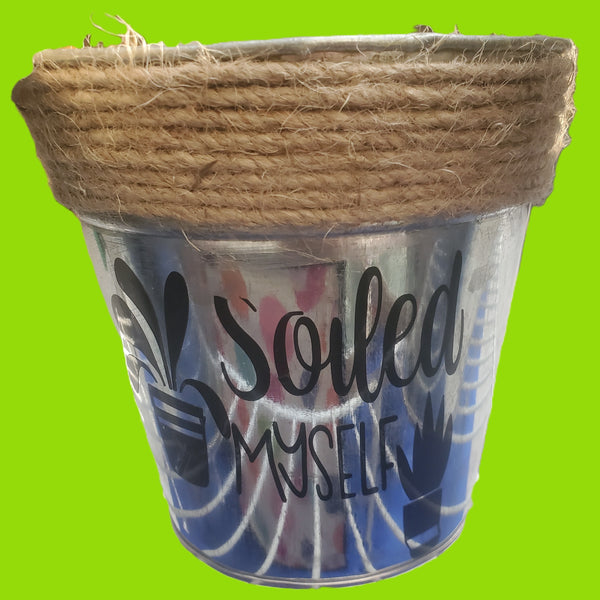 Funny Metal Plant Pot – "Soiled Myself" – Quirky Planter with Jute Twine for Succulents & Gifts