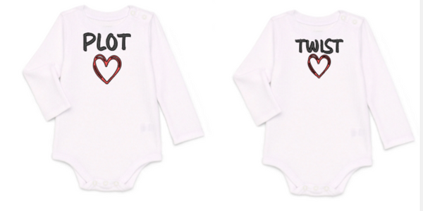 Celebrate your little duo with our “Plot Twist” complimenting twin baby onesies, tshirt, hoodie, or sweatshirt! This adorable long or short sleeve bodysuit in your choice of color set features a design that complete each other — perfect for twin boys or girls. Made from soft cotton for comfort and easy snap closures for quick diaper changes. Ideal twin baby shower gift, newborn photo outfit, or everyday matching twin look!