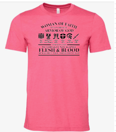 Woman of Faith T-Shirt – Armor of God Ephesians 6:12 Christian Tee