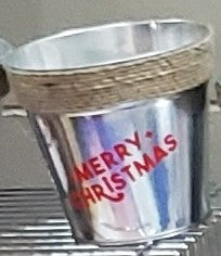 Merry Christmas Galvanized Metal Pot | Rustic Holiday Planter | Farmhouse Christmas Decor | Small Flower Pot