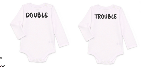 - Matching Twin Baby Onesies – “Double Trouble” Bodysuit Set | Cute Twin Outfit Gift