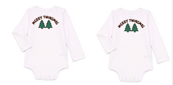 - Matching Twin Baby Onesies – “Merry Twinsmas” Bodysuit Set | Cute Twin Outfit Gift